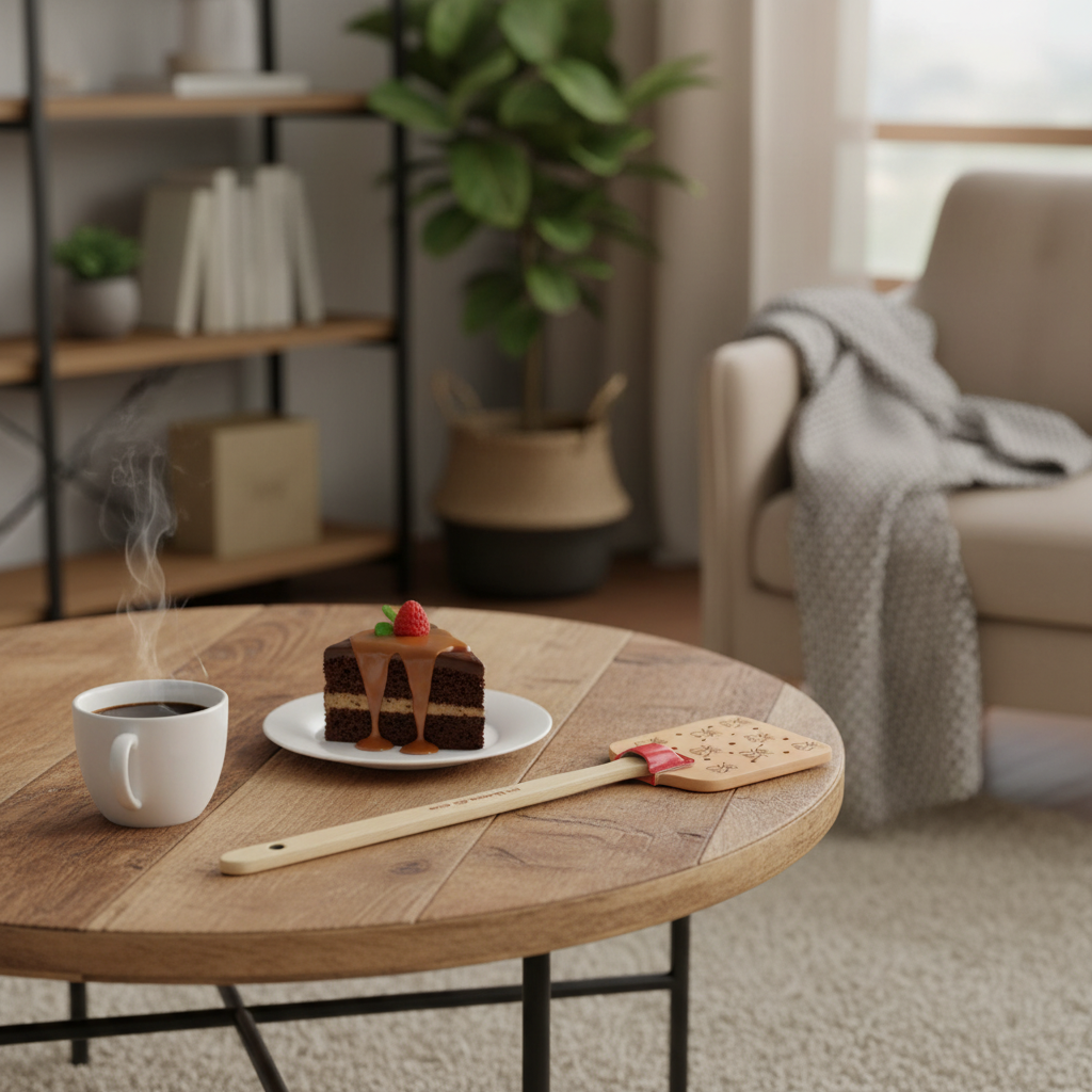 Handgemachte Rindsleder-Fliegenklatsche mit dem geniallen Spruch "Ich klatsch dir eine".
