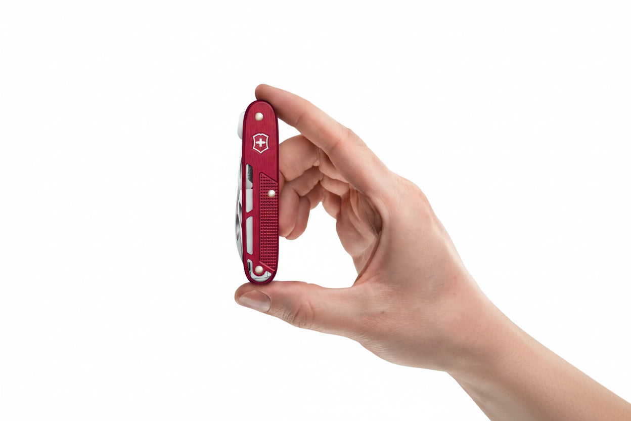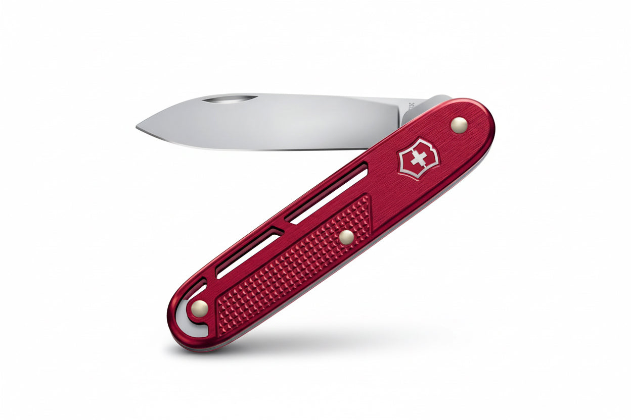 Wir haben das Onefold Alox als Teil unserer Alox Refined Kollektion gefertigt. Mit diesem Messer möchten wir ultimative Einfachheit und Nützlichkeit in einem modernisierten und minimalistischen Design bieten. Die skelettierten Alox-Schalen sorgen für einen perfekten Grip, damit Sie im Vertrauen auf Sicherheit mit der grossen, feststellbaren Klinge arbeiten können. Für verbesserte Mobilität haben wir einen genieteten Trageclip hinzugefügt. Onefold Alox ist in drei Farben erhältlich und ideal für alle, die praktische Funktionalität im Alltag schätzen: Rot, Dunkelblau und Silber.